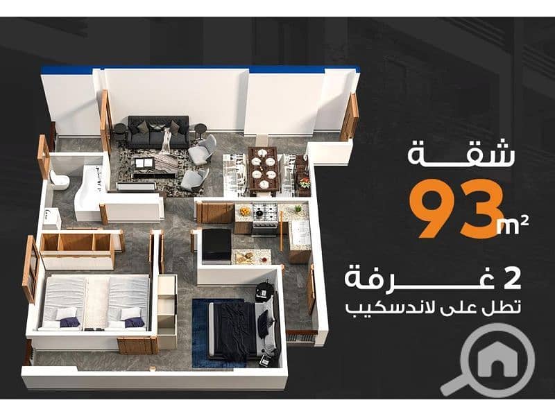التقسيم الداخلي: 2 غرف نوم + حمام + ريسبشن + مطبخ.
