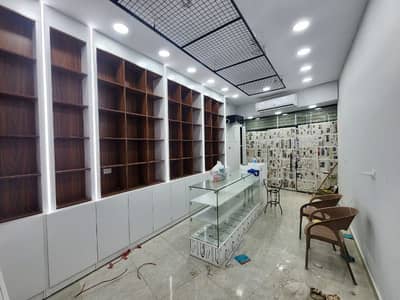 محل ٨٠ متر صافي به مكتب - مخزن - حمام - ٢ باب سيكوريت - سقف جبس برود - تاسيس تكييف - سيستم كاميرات