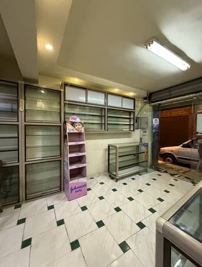 صيدلية للبيع بدواليبها ومعمل وحمام