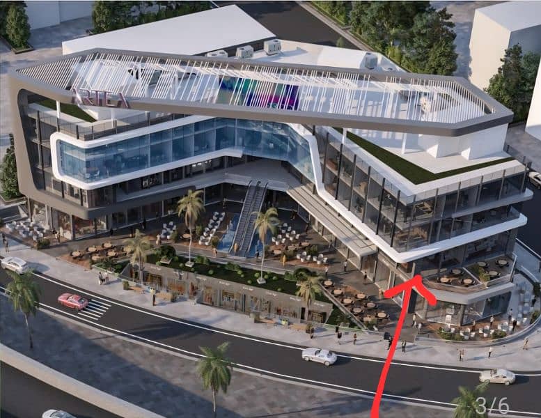 المحل دور اول (ناصية) واجهتين علي الشارع الرئيسي والبلازا و الواجهة الامامية مباشرة + مساحة خارجية