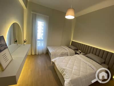 شقة للإيجار مفروشة بالكامل فيو حمام سباحة مباشرةً في أميز موقع في كمبوند ميفيدا بوليفارد مكونة من غرفتين فرش مستورد حديث بالكامل Apartment for rent