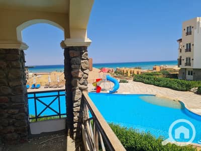 مساحة 120م = 3 غرف كل الشالية full sea view بالكامل وقدامة حمام السباحة مباشرة