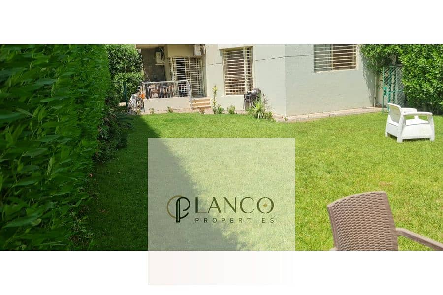 شقة مفروشة للإيجار في الدور الأرضي، مع حديقة خاصة بأثاث فندقي لضمان راحتكم .