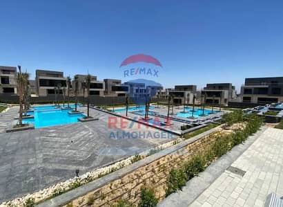 شقة جاهزة للسكن مكونة من 3 غرف نوم في El Patio Zohraa مع حديقة وسقف ومنزل زجاجي وتصميم واسع وسعر السوق.