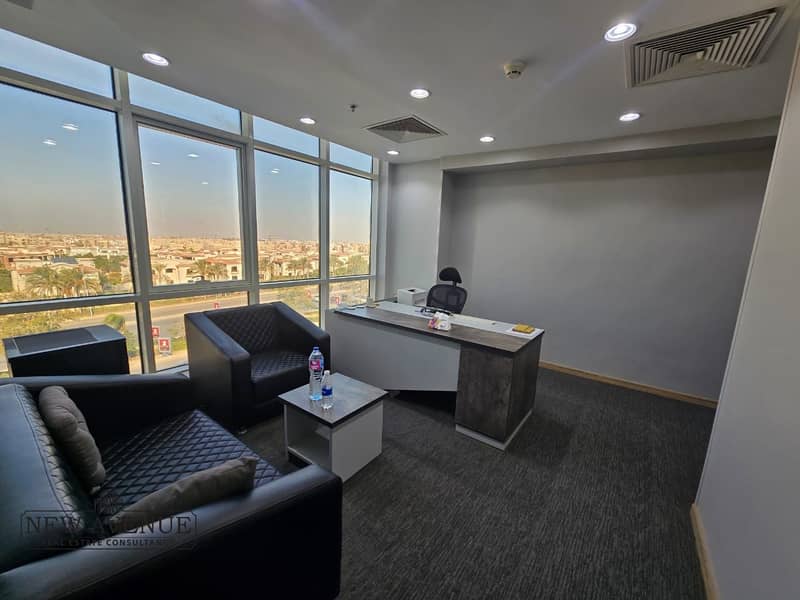 مكتب متشطب للبيع في تريفيوم يطل علي شارع التسعين الرئيسي