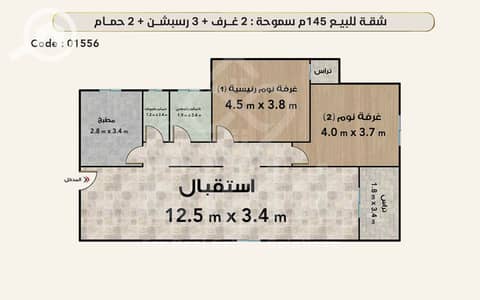 • غرفتين - ريسبشن 3 قطع - 2 حمام