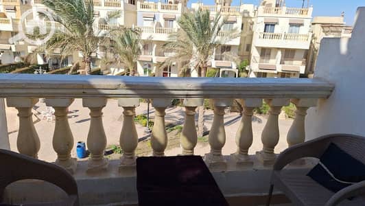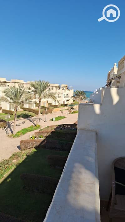 بالأضافه الي الروف بنفس مساحه الشاليه الفيو حمام سباحه بينها وبين البحر 10 دقائق