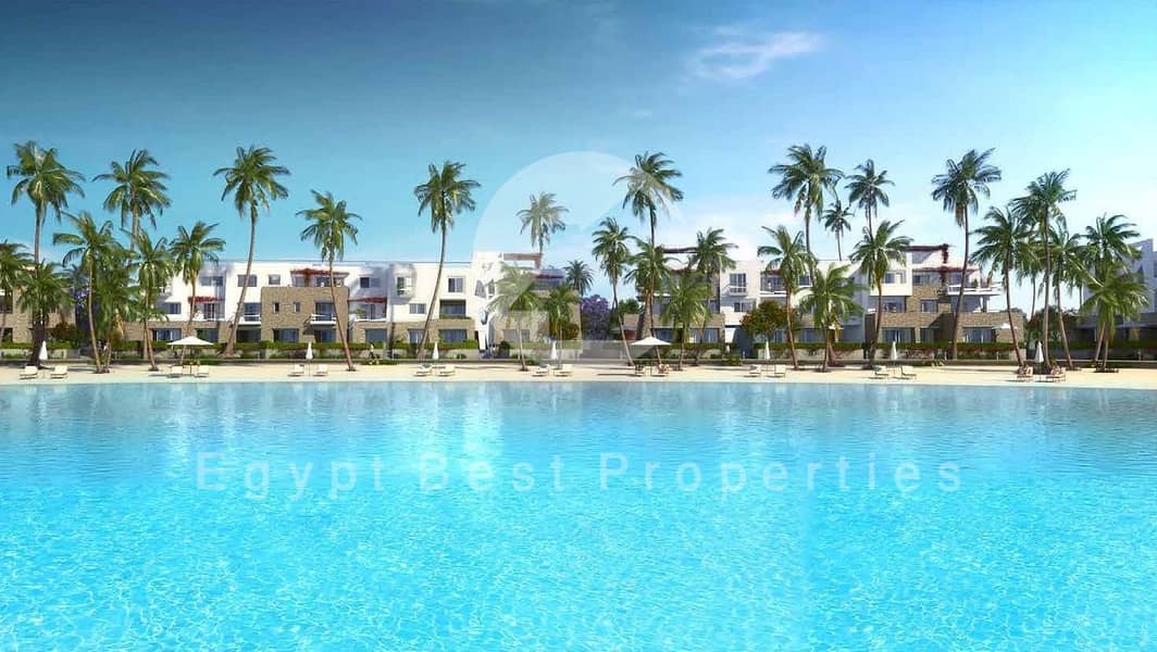 للبيع في افضل موقع في البحر الاحمر سوان ليك الجونه شاليه متشطب موقع مميز علي اللاجون