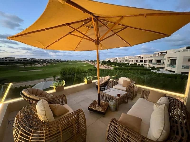 شاليه علوي سينيور مفروش للبيع في هاسيندا باي، تشطيبات فاخرة، إطلالة على ملعب الجولف, على بُعد خطوات من النادي