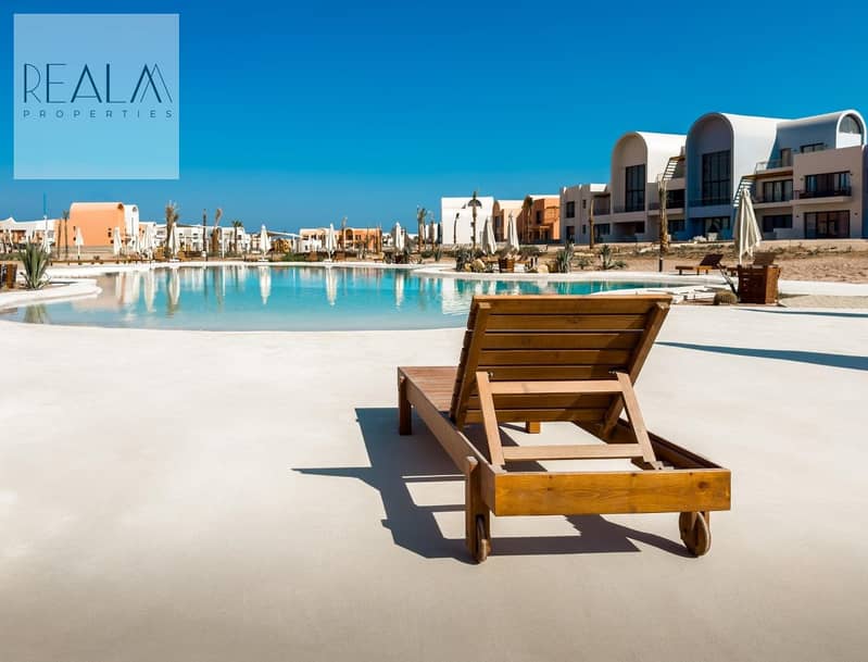 شاليه متشطب بالمطبخ و الحمام بفيو لاجون في الجونة