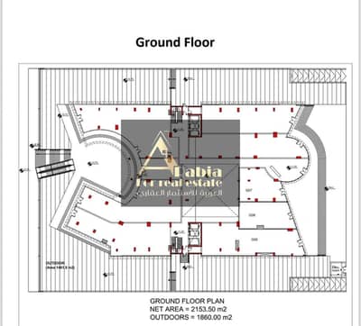 أرضي: ٢١٥٨ متر مربع مساحة المكاتب + ١٨٦٠ متر مربع مساحة الأبواب الخارجية