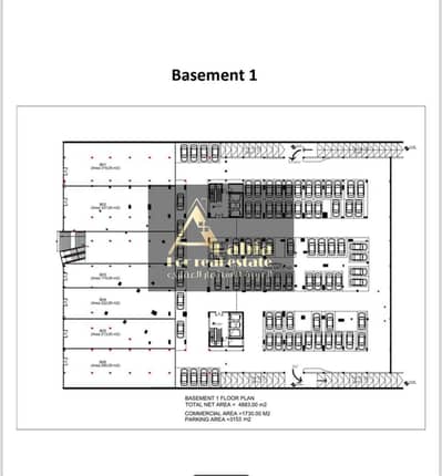 بدروم ١ : ٣١٣٥ متر مربع مساحة مواقف السيارات + ١٧٣٠ متر مربع مساحة المكاتب