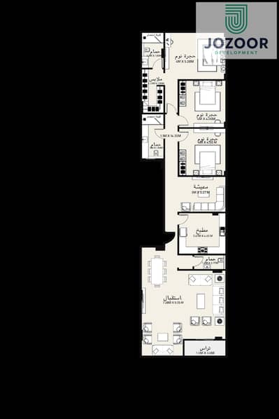 3 غرف , 3 حمام , 2 قطعه ريسبشن , مطبخ ( استغلال مثالي لكل متر )