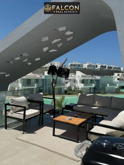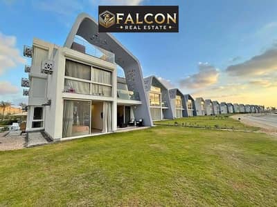 شاليه كورنر فيو بحري كامل علي البحر + كريستال لاجون تشطيب كامل موقع مميز راس الحكمه الساحل الشمالي