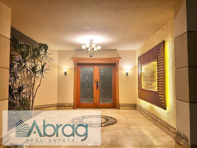 ٥ غرف مستر + غرفة بدون حمام + ٢ حمام + ٢ مطبخ + روف + غرفة علي الرووف + جنينة + حمام سباحة وجراچ