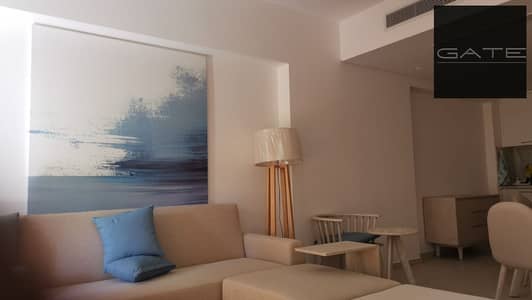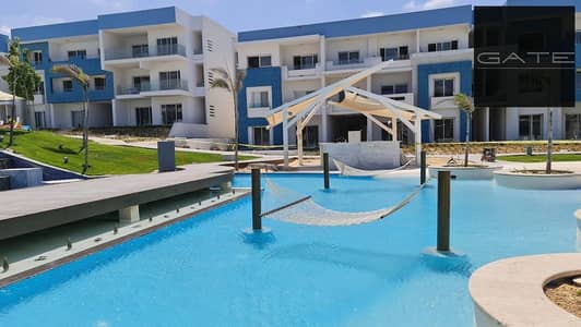 ريسيل | شقة فندقية في فوكا باي جاهزة للاستلام الفوري، بتشطيب سوبر لوكس، مفروشة بالكامل بالأجهزة والتكييفات، وإطلالة رائعة على البحر وحمام السباحة.