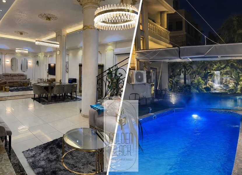مودرن تريو فيلا مفروشة 5 غرف نوم بحمام سباحة دافئ مغطى بكمبوند لافيدا