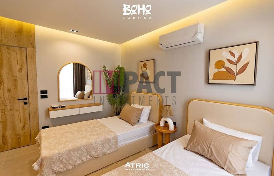 شالية للبيع على البحر استلام فورى متشطب بالكامل الترا سوبر لوكس فى منتجع بوهو السخنة