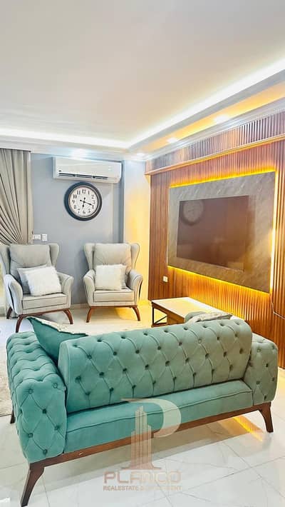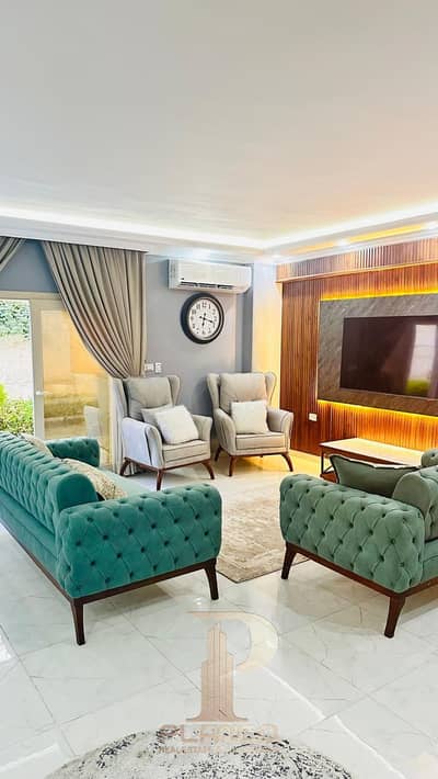 الدور الأرضي: ريسبشن كبير، مطبخ أمريكان، حمام واسع، جيم مجهز بالكامل، وحديقة كبيرة.