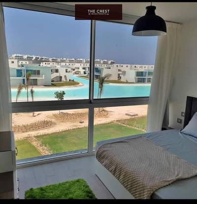 شالية استلام فوري 135 م تشطيب كامل مع التكيفات فيو علي البحر مباشرة في الساحل الشمالي