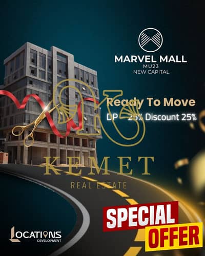 مكتب اداري 252 م استلام فوري متشطب بالتكييف بمقدم 25% فرصة مثالية للاستثمار تبدأ شغلك من اول يوم صف اول علي محور الامل ومدخل الحي السكني R3 العاصمة