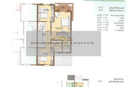 الدور الاول : 3 غرف منهم غرفة ماستر وحمامين وليفينج روف