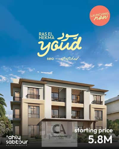 بمقدم 5% شاليه للبيع غرفتين متشطب بالكامل في راس الحكمه في مشروع يود مع الاهلي صابور - فيو علي البحر مباشره - اقساط علي 10 سنوات Youd