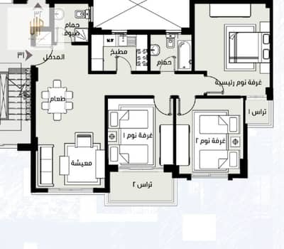 التقسيم: 3 غرف نوم و2 حمام (نموذج ممتاز وعملي جداً).