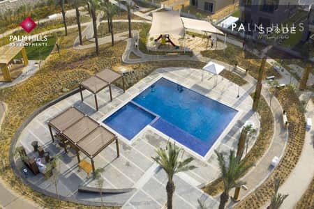 شقة واسعة جاهزة للاستلام في قلب كمبوند بالم هيلز نيو كايرو، تقع في الدور الأول.