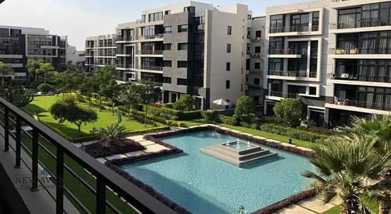 شقة تشطيب كامل بالتكييفات استلام خلال سنة اطلالة على حمام السباحة بالتقسيط في واتر واي القاهرة الجديدة