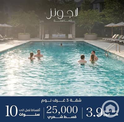شقه للبيع 3غرف بسعر الطرح الاول في لاجونز العاصمة بالتقسيط علي 10 سنين بفيو مفتوح علي اكبر لاجون في العاصمه