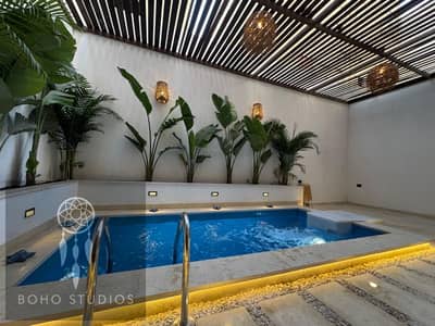 حمام سباحة خاص (فكرة جديدة ومبتكرة للاستوديوهات) + فلتر مياه + إضاءة داخلية وخارجية + أباليك حديثة