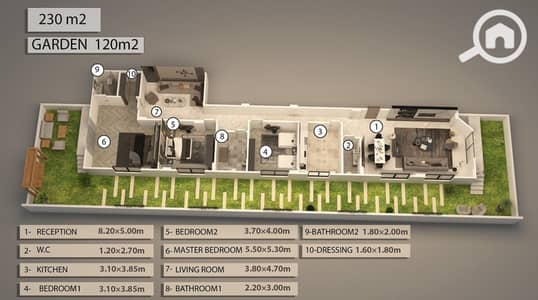 شقة 205م ارضى بجاردن خاص 120م بالحى التانى شرق فيلات قريب من مول تراس وشارع الشباب استلام بعد سنة بتقسييم داخلى متميز