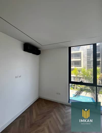 متقسمة : 3 غرف + رسيبشن بتراس فيو على حمام سباحة + مطبخ + 2 حمام