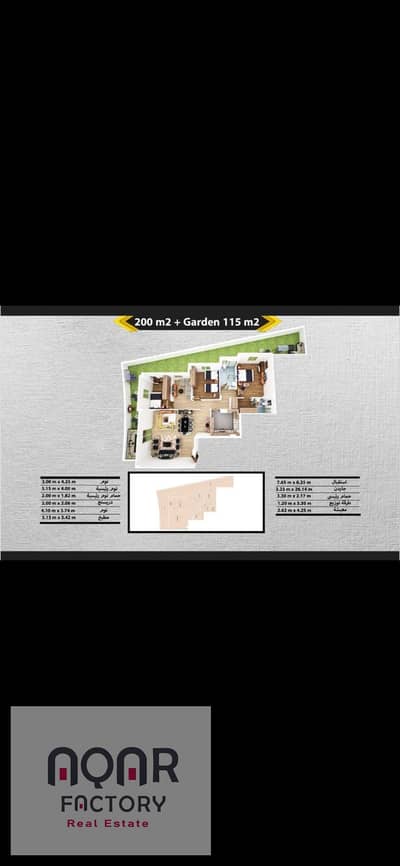 - المساحة: 200 م² + 150 م² جاردن خاص
