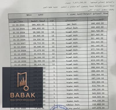 السعر الإجمالي: 7,600,000 جنيه