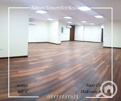مقر اداري للايجار بالتكيفات في مكرم عبيد الرئيسي 400م مترخص اداري في برج حديث اداري شركات فقط