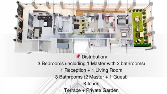 - 3 غرف نوم (منهم ماستر روم بدريسينج)