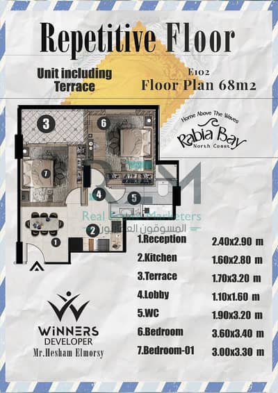 68 متر - غرفتين ورسبشين ومطبخ وحمام تشطيب سوبر لوكس