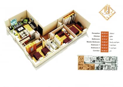 تقسيمه العقار: 3غرفه \ 1حمام \ 2 ريسبشن