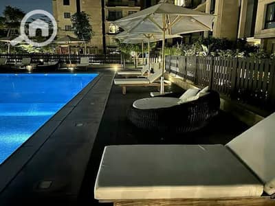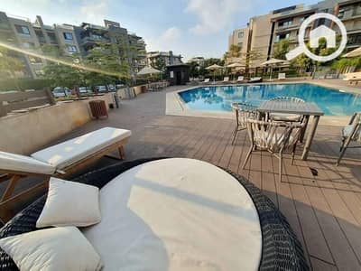 شقة للإيجار في كمبوند آزاد، غرفتين نوم، طابق أرضي، مع حديقة إطلالة مفتوحة، حديقة خاصة ومسبح موقع مميز إطلالة خلابة