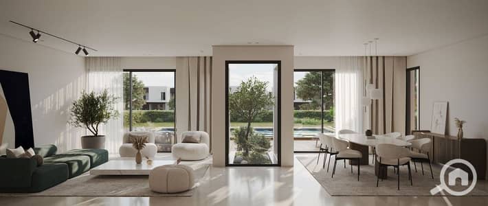 التصميم الداخلي: 3 غرف نوم – 3 حمامات – ريسبشن واسع – مطبخ – تراس يطل على المساحات الخضراء
