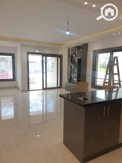 شقة أرضى بحديقة 3 غرف نوم بالمطبخ والتكييفات للايجار فى كمبوند تاج سلطان! تشطيب مميز