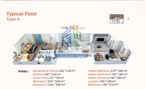 3 غرف نوم ، ريسبشن 3 ق ، 3 حمام ، مطبخ ، غرفة غسيل