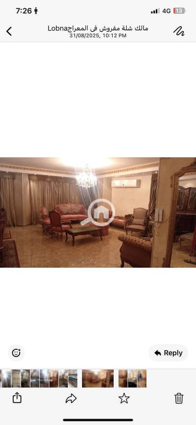 شقة ايجار في زهراء المعادى مساحة ٢٢٠ متر في المعراج العلوى امام مستشفى رويال