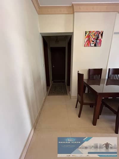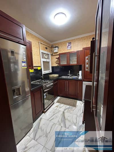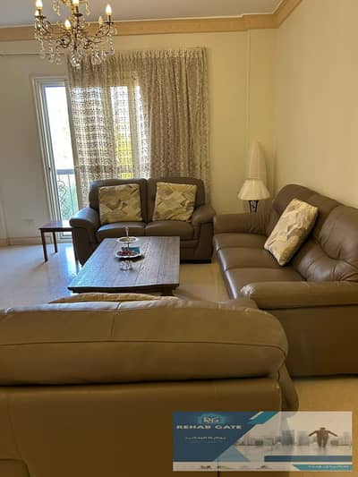 شقة مفروشة للإيجار في الرحاب 2 – المرحلة الخامسة، بالدور الأول مع أسانسير، بمساحة 99 م² تضم غرفتين نوم وحمام واحد، مفروشة بالكامل بأثاث عصري وأجهزة كه