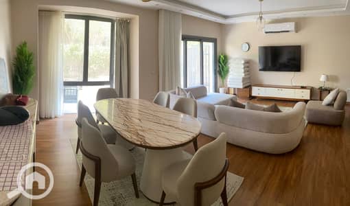 شقة فاخرة بحديقة غرفتين نوم مفروشة بالكامل في كمبوند ايست تاون بالقرب من الجامعة الامريكية بالقاهرة الجديدة