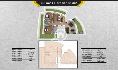 *( المساحة ٣٠٠ متر + جاردن ١٦٠ )*