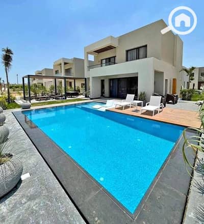 متاح عدد محدود من الفيلا دي متشطبه بالكامل صف اول علي اللاجون للبيع في ازها العين السخنه