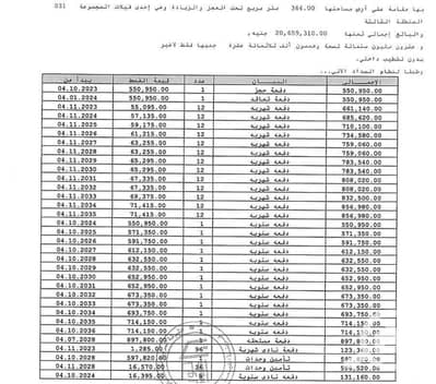 إجمالي العقد 20,659,000 تقسيط على 12 سنة
